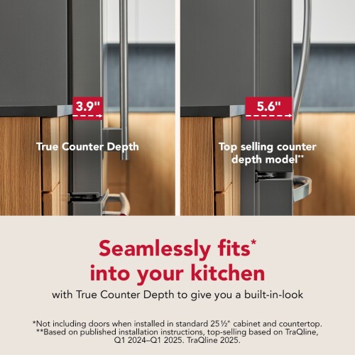 - let you open the refrigerator doors up to 135° making it easy to unload groceries and remove refrigerator shelves while maintaining a True Counter Depth* aesthetic.