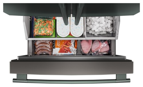 - conveniently organizes frozen foods so they're easy to find. An adjustable storage divider in the lower drawer, pizza pocket and flat-item shelf help keep smaller items from getting lost under larger ones.