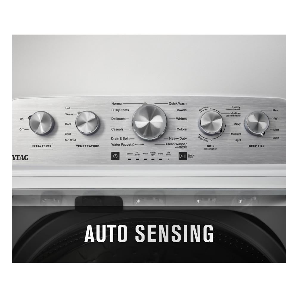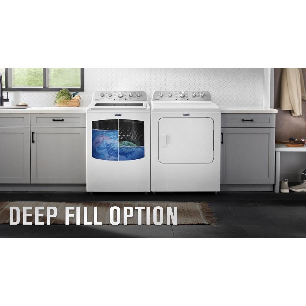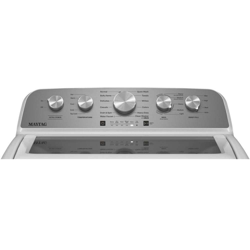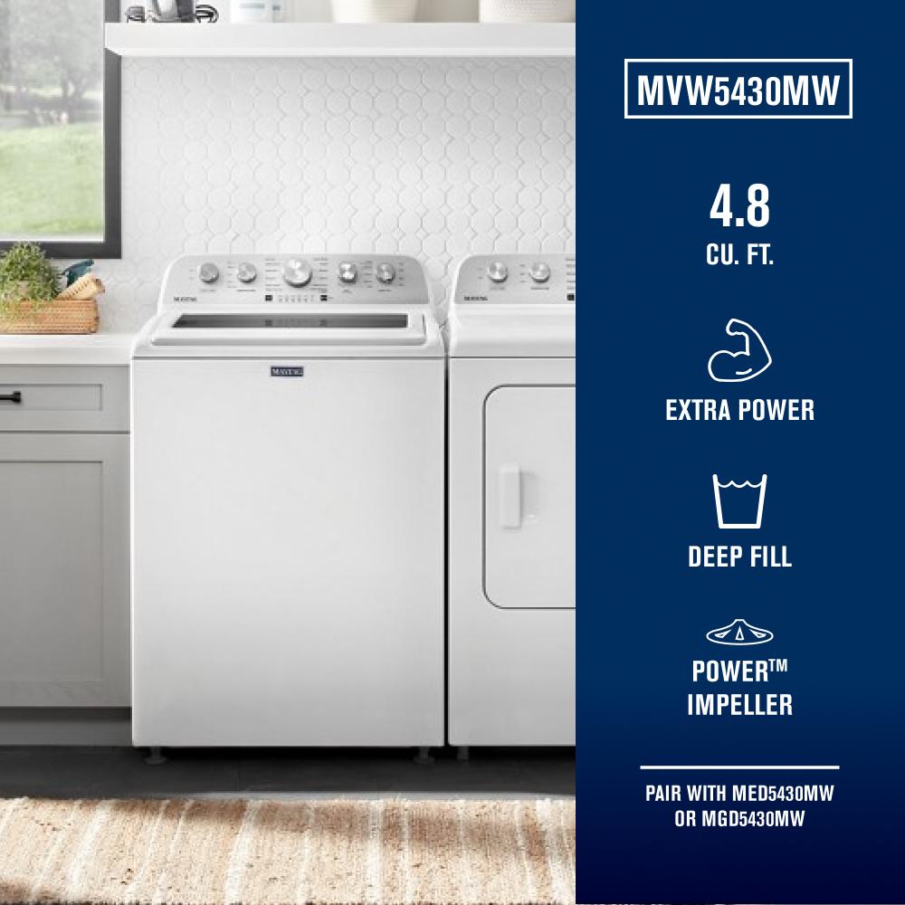 The Maytag® 4.8 cu. ft. capacity washer with Extra Power delivers boosted stain fighting on any wash cycle while the Power™ impeller helps dissolve soils with a vigorous wash motion. This Deep Fill washer delivers more water when you want it while the built-in water faucet rinses, spot treats or soaks clothes right in this heavy duty washing machine.