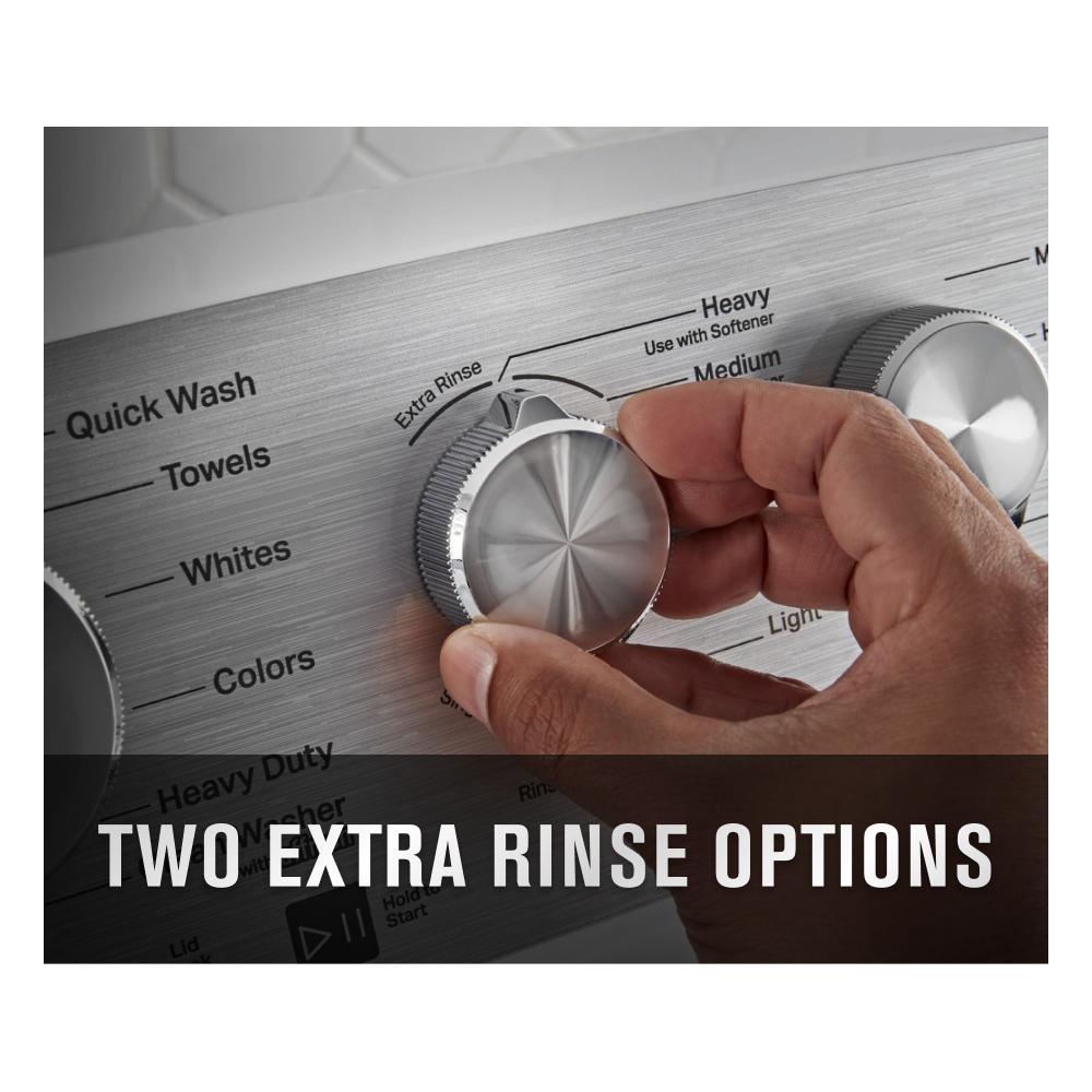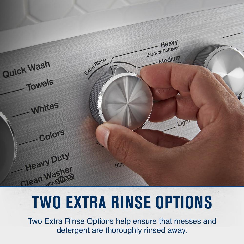- Two Extra Rinse options help ensure that messes and detergent are thoroughly rinsed away. Add it to heavily soiled clothes and loads with fabric softener to achieve an optimal clean.