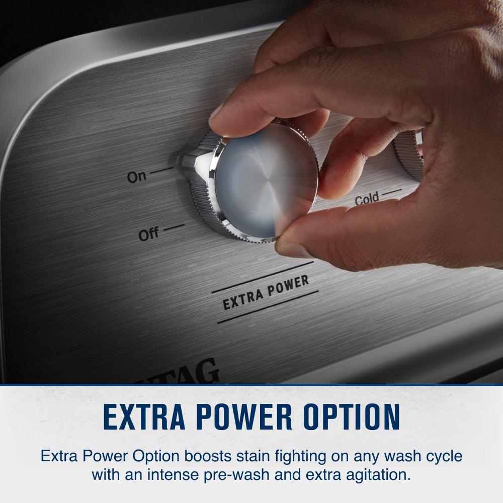 - Extra Power boosts stain fighting on any wash cycle with an intense pre-wash and extra agitation so you can walk away while stains wash away.