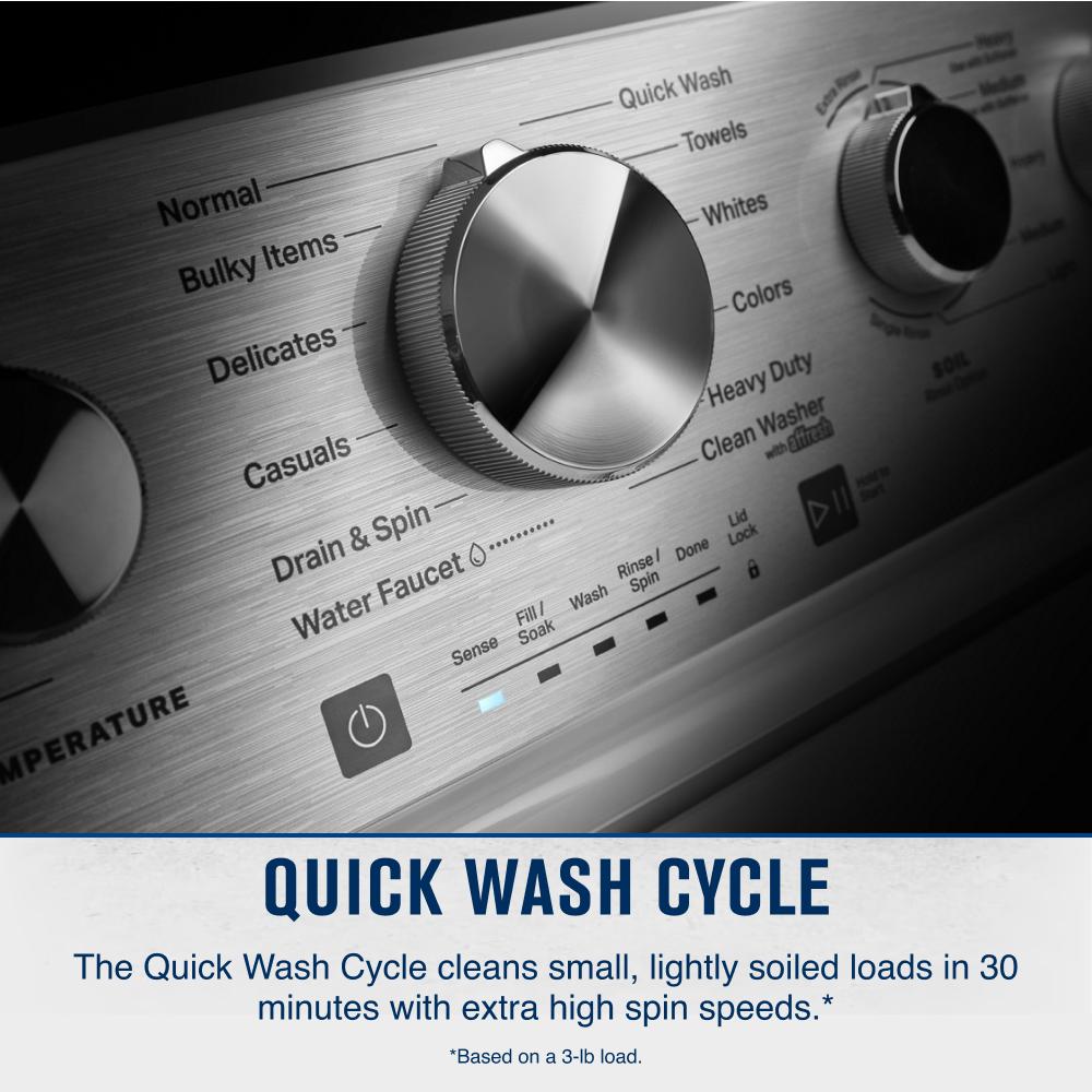 - Strapped for time? Using extra high-spin speeds, the Quick Wash cycle cleans small, lightly soiled loads in 15 minutes.* Get clean clothes fast by pairing it with the Quick Dry cycle on matching Maytag® dryers.
