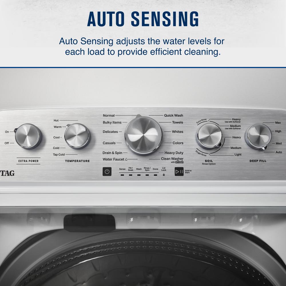 - Auto Sensing adjusts the water levels for each load to provide efficient cleaning.