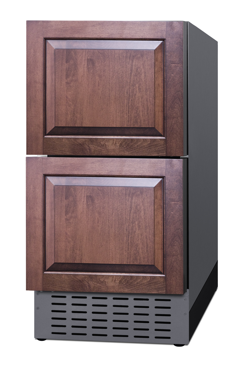 Summit manufactures the industry's largest selection of 18 inch wide refrigeration for under the counter, with a variety of versatile choices for indoor or outdoor kitchens. The ADRD18H34 is a two-drawer all-refrigerator sized just under 18 inches wide. The front-breathing design and finished 304 grade stainless steel cabinet allow for built-in or freestanding use. Complete stainless steel construction inside and out offers durability in a professional look. Soft close glides allow you to gently close each drawer with a light touch. The drawers can also be customized with overlay panels to match or accent existing cabinetry design. The stainless steel kickplate and stylish handles complete the look. This unit features a right angle cord and sealed rear for added space spacings. Frost-free operation ensures minimum user maintenance inside the 3.4 cu ft. interior. Each drawer includes a divider to make it easier to separate and organize your storage, with attractive and efficient LED lighting to illuminate the interior. Intuitive digital controls display a temperature readout switchable from Fahrenheit to Celsius to best suit your preference. High/low temperature alarms audibly warn if the interior goes out of the recommended range. Additional features include an open drawer alarm, child lock to secure the controls, sabbath mode for optional observance, and eco-mode for energy savings. Model ADRD18H34 is ETL-S listed to NSF-7 commercial standards and also meets DOE guidelines for residential use. For a 32" high ADA compliant version, see the ADRD18. This unit is also approved for use in outdoor kitchens. Additional 18" wide options are available in front-opening styles as refrigerators, freezers, icemakers, beverage centers, and wine cellars. Browse the complete Summit lineup for more options.