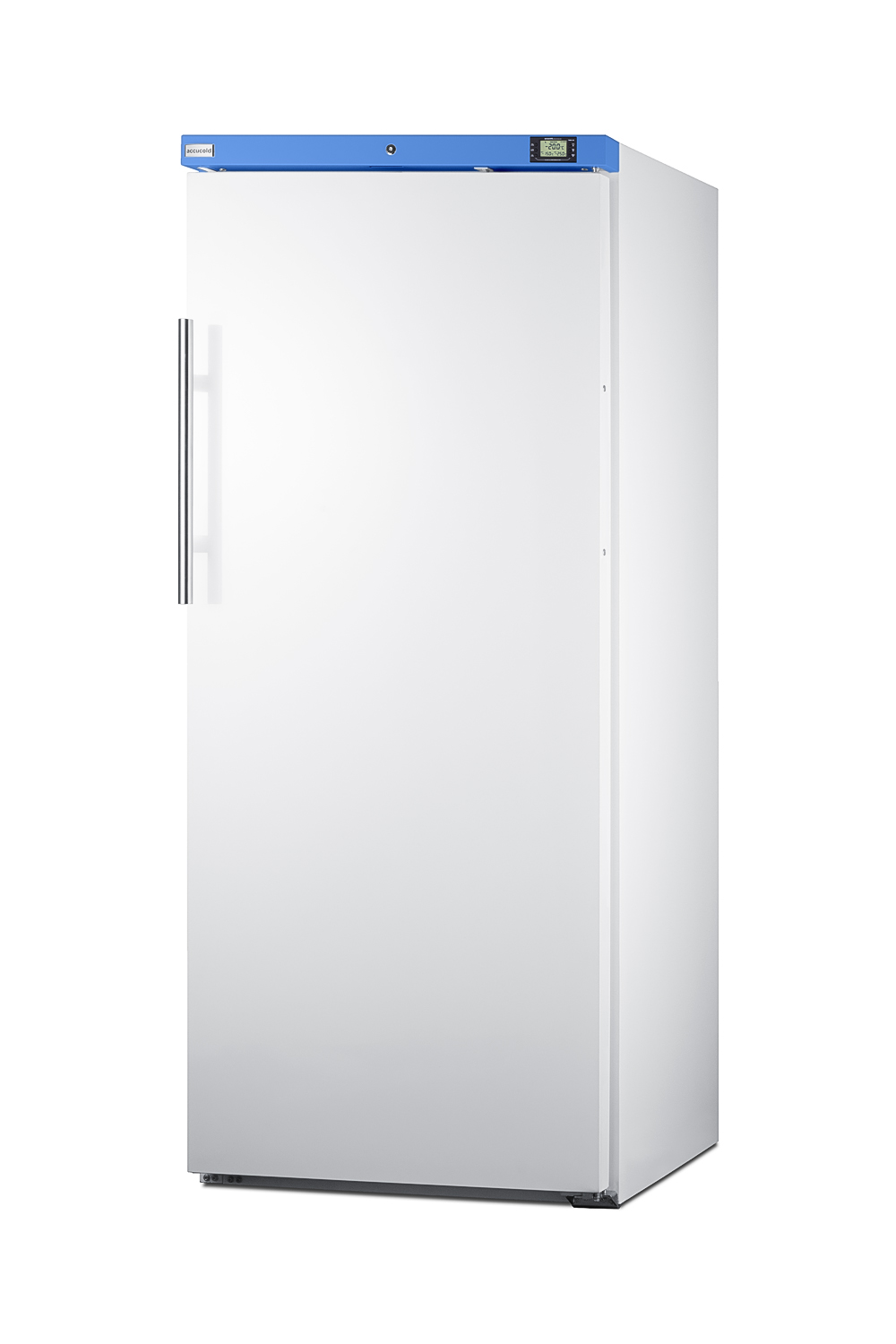 Summit Commercial manufactures a wide range of full-sized refrigeration choices approved to NSF-7 standards, including upright freezers. Model AFM19W is a large capacity front-opening freezer with an 18.3 cu.ft. interior. It is ETL-S listed to NSF-7 for commercial storage applications. This freezer utilizes a static manual defrost cooling system that offers more stabilized temperature than traditional no-frost units. The dial thermostat is located inside to prevent accidental temperature adjustments. Cantilevered shelving with epoxy-coated wire shelves allows you to adjust the interior to best accommodate a variety of sizes, while the flat door liner helps to fit deeper trays than units equipped with door racks. An automatic LED light makes it easy to see the full interior.This freezer comes in a white exterior finish. The keyed lock is conveniently located towards the top of the unit for easier user access. The reversible door includes an easy-grip handle in a brushed aluminum finish. This unit includes a 9'5" long power cord with a hospital grade 'green dot' plug for a more secure connection, ideal for high traffic commercial environments. The cooling system utilizes hydrocarbon refrigerant for a greener footprint that meets CARB regulations. For advanced insulation, the door features a vacuum seal that keeps all cold air inside. In addition to this freezer, Summit Commercial manufactures a full lineup of full-sized commercial refrigerators and freezers, including reach-in style and frost-free options. Browse the full lineup to explore our catalog.