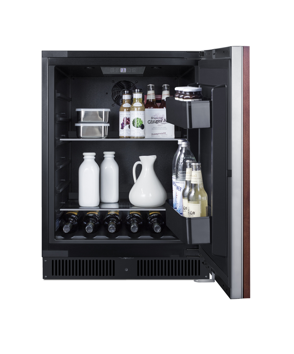 SUMMIT's AL54 series features built-in undercounter all-refrigerators designed for installation under lower ADA compliant counters, with advanced features for user convenience.Sized with a convenient 24" footprint, the AL54IF is just 32" high to fit under lower counters complying with ADA guidelines for accessibility. The fully finished black cabinet allows freestanding use, while the front-breathing system also allows this unit to be built-in with minimum clearance. The reversible stainless steel door features a European-style fully articulating hinge for zero clearance opening. We include a 2-piece bracket kit that allows easy installation of overlay panels to create a custom look that can seamlessly blend into your existing cabinetry design (panel size: 28.38" H x 23.4" W; maximum weight: 10 lbs.). This unit has a flush back for easy cleaning and a right angle plug for a better fit. A factory-installed lock is located in the kickplate.Inside, the AL54IF utilizes frost-free operation with fan-forced cooling to ensure low maintenance and even temperature distribution. Recessed LED lighting offers an attractive yet efficient look. The digital thermostat makes it easy to manage the interior temperature. This unit includes adjustable glass shelves for flexible, spill-proof storage and two large door racks ideal for keeping condiments and bottles in easy reach. The floor is specially slotted to hold bottles in place. Additional features include an open door alarm, high temperature alarm, and Sabbath mode setting that lets you disable some of the electrical elements during periods of observance.The AL54IF refrigerator is ETL-S listed to NSF-7 commercial standards but can also be used in the home. With its deluxe style and user-friendly features, this unit is the perfect choice for home or commercial kitchens. Additional styles are available, as well a matching frost-free freezer (model ALFZ53IF). Browse the full Summit line to explore your endless options.