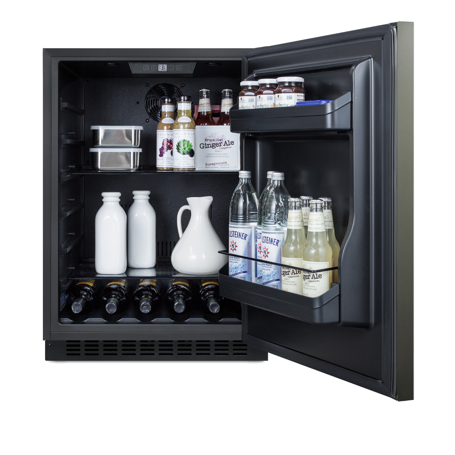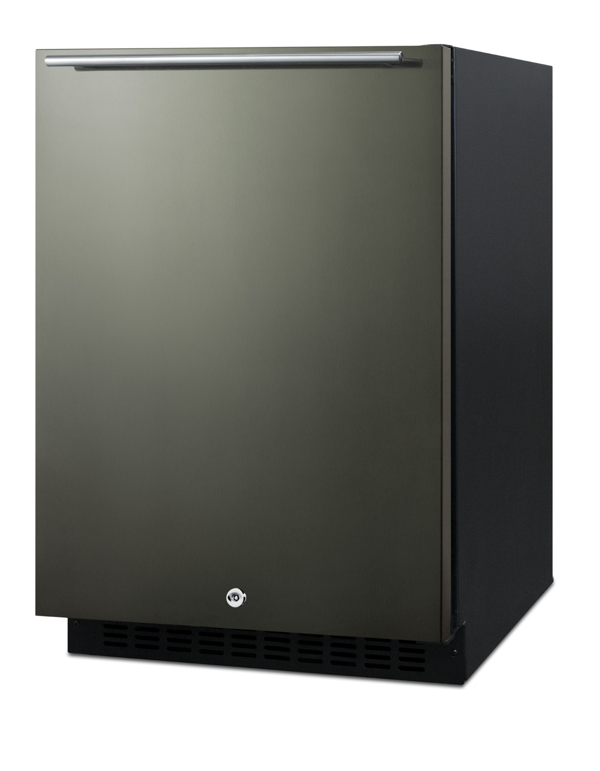 SUMMIT's AL54 series features built-in undercounter all-refrigerators designed for installation under lower ADA compliant counters, with advanced features for user convenience.Sized with a convenient 24" footprint, the AL54KSHH is just 32" high to fit under lower counters complying with ADA guidelines for accessibility. The fully finished black cabinet allows freestanding use, while the front-breathing system also allows this unit to be built-in with minimum clearance. This model's reversible door comes in our new black stainless steel finish from our exclusive basalt collection. The wrapped door is made from 304 grade stainless steel with a high gloss finish in a neutral hue to perfectly accent or complement your kitchen design. The door is strongly resistant to most fingerprints and can easily be wiped clean with a dry cloth. Our signature thin handle in brushed stainless steel is mounted horizontally to complete the modern look. This unit has a flush back for easy cleaning and a right angle cord for added space savings. A front lock offers added security.Inside, the AL54KSHH utilizes frost-free operation with fan-forced cooling to ensure low maintenance and even temperature distribution. Recessed LED lighting offers an attractive yet efficient look. The digital thermostat makes it easy to manage the interior temperature. This unit includes adjustable glass shelves for flexible, spill-proof storage and two large door racks ideal for keeping condiments in easy reach. The floor is specially slotted to hold bottles in place. Additional features include an open door alarm, high temperature alarm, and Sabbath mode setting that lets you disable some of the electrical elements during periods of observance.The AL54KSHH refrigerator is ETL-S listed to NSF-7 commercial standards but can also be used in the home. With its deluxe style and user-friendly features, this unit is the perfect choice for home or commercial kitchens and can be paired with the matching ALFZ53KSHH fro