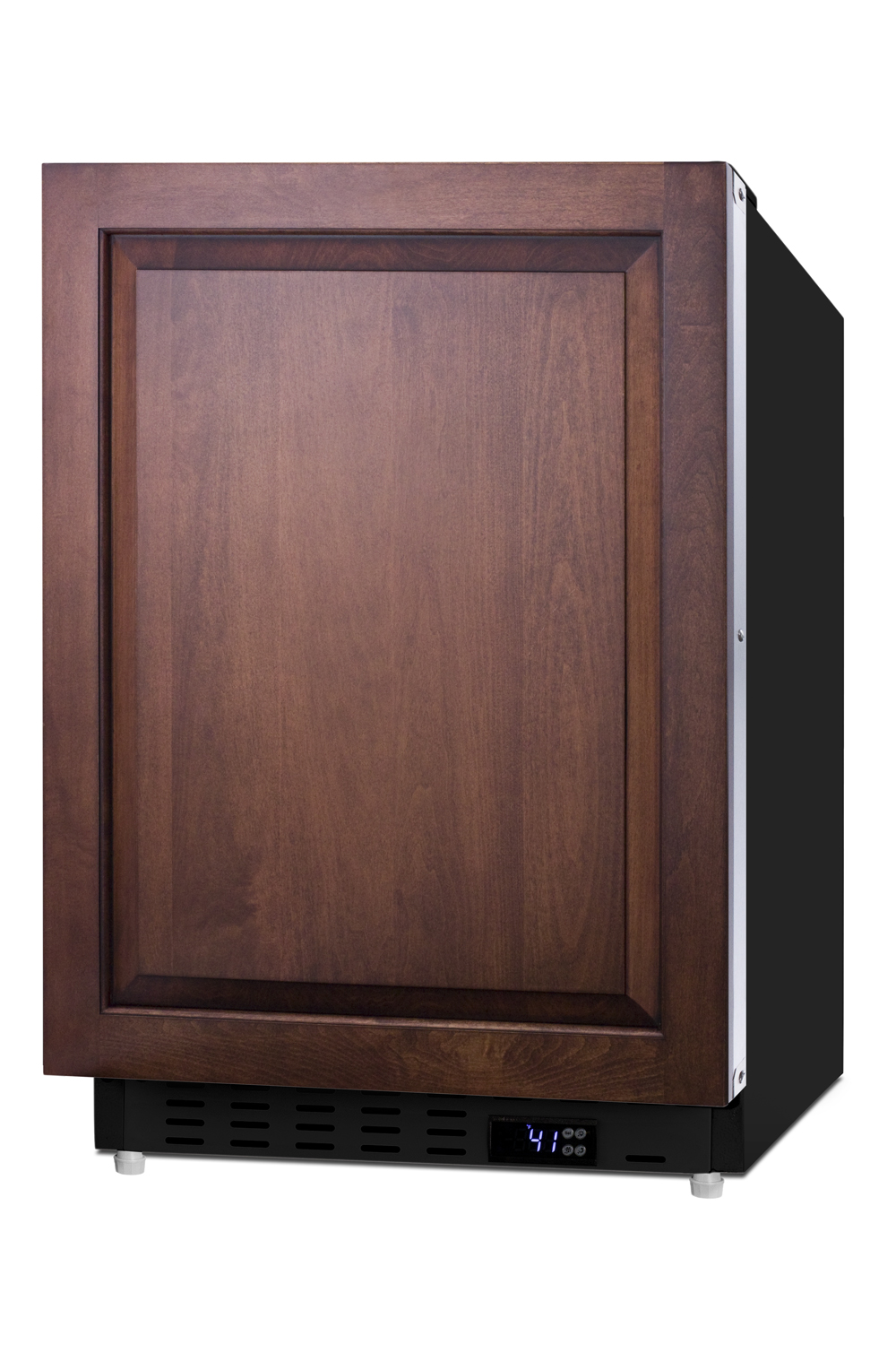 Summit Appliance offers a quality selection of 21" wide built-in undercounter all-refrigerators designed for installation under lower ADA compliant counters, with advanced features for user convenience.The ALR47BIF is sized at 32" high to fit under lower counters complying with ADA guidelines for accessibility. The fully finished textured black cabinet allows freestanding use, while the front-breathing system means this unit can be built-in with minimum clearance. The door is 3" thick for efficient insulation and features an integrated stainless steel frame designed to accept full panel overlays, allowing users to seamlessly blend the unit into their own cabinetry design (panel size: 19 13/16" W x 27 1/8" H). This unit comes with a right angle cord to allow for easier placement without added depth. A digital thermostat, located in the kickplate, makes for easy temperature management with a readout in Fahrenheit or Celsius. Inside, the ALR47BIF features an all-white interior for easy cleaning and viewing of contents. An LED light located toward the front of the unit attractively illuminates the interior when the door opens. Automatic defrost operation ensures minimal user maintenance, with an internal fan to help ensure even cooling throughout the 3.53 cu.ft. interior. Three adjustable glass shelves offer optimal storage options for large and small items, while a pull-out crisper drawer provides storage for fruits and vegetables. Three removable door racks accommodate additional storage as needed. The user-set high and low-temperature alarms provide added security should the temperature go beyond the setpoint, while the open door alarm sounds if the door is ajar over one minute for added peace-of-mind. These alarms can be disabled depending on your needs. Sized at just 21" wide, the ALR47BIF is the perfect addition for space-challenged environments seeking dependable freezer options in a durable design. For a complete set, pair this unit with the matching ALFZ37BIF a