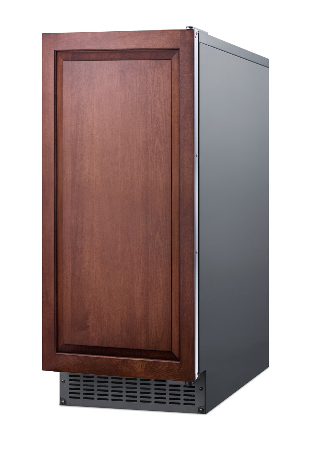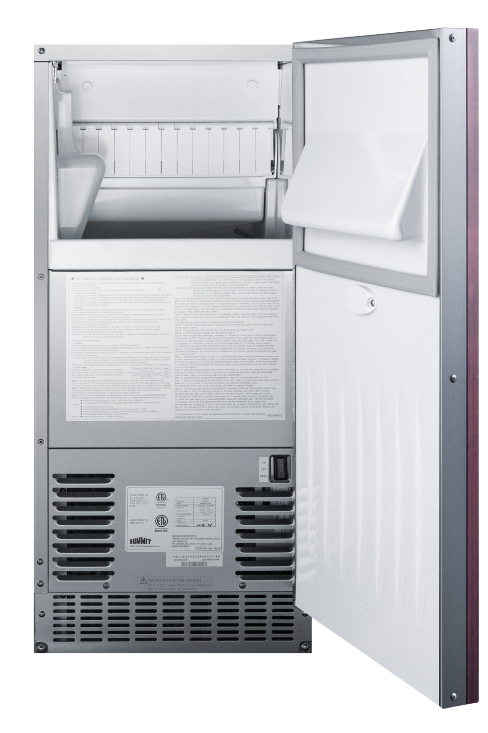 Summit's commercially listed BIM68OS series icemakers are an attractive and durable solution to keeping a continuous supply of clear ice on hand in virtually any indoor or outdoor location.Sized at 15" wide, the BIM68OSPUMPIF features a complete 304 grade stainless steel exterior specially built to hold up to the elements. The door is designed with a powerful magnetic gasket to ensure proper insulation. An integrated stainless steel door frame is designed to accept overlay panels, allowing you to create a custom look that blends into your cabinetry decor (panel size: 29 9/16" H x 14 7/8" W at 3/4" thick). The front-breathing design allows built-in installation under counters, while the fully finished stainless steel cabinet lets the unit be used freestanding. The internal pump allows more flexibility in where you choose to place the unit. This unit has a sealed back to ensure added outdoor protection and easier cleanup.The BIM68OSPUMPIF produces clear gourmet dice-style ice cubes, perfect for keeping any beverage cold without diluting the flavor. Under standard operating conditions, this unit can make up to 47 lbs. in a day cycle, while the storage bin can hold up to 26 lbs at a time. We include an ice scoop that can be hung inside for easy use. Frost-free operation eliminates the need to defrost the interior.Designed and manufactured for us in South Korea, the BIM68OSPUMPIF is UL-S listed to NSF-12 commercial standards for use in foodservice settings. The weatherproof constructed allows outdoor use, but this model can also be installed indoors in any kitchen or wet bar. NOTE: This unit requires professional installation. Drain hose and other connection equipment is not included.