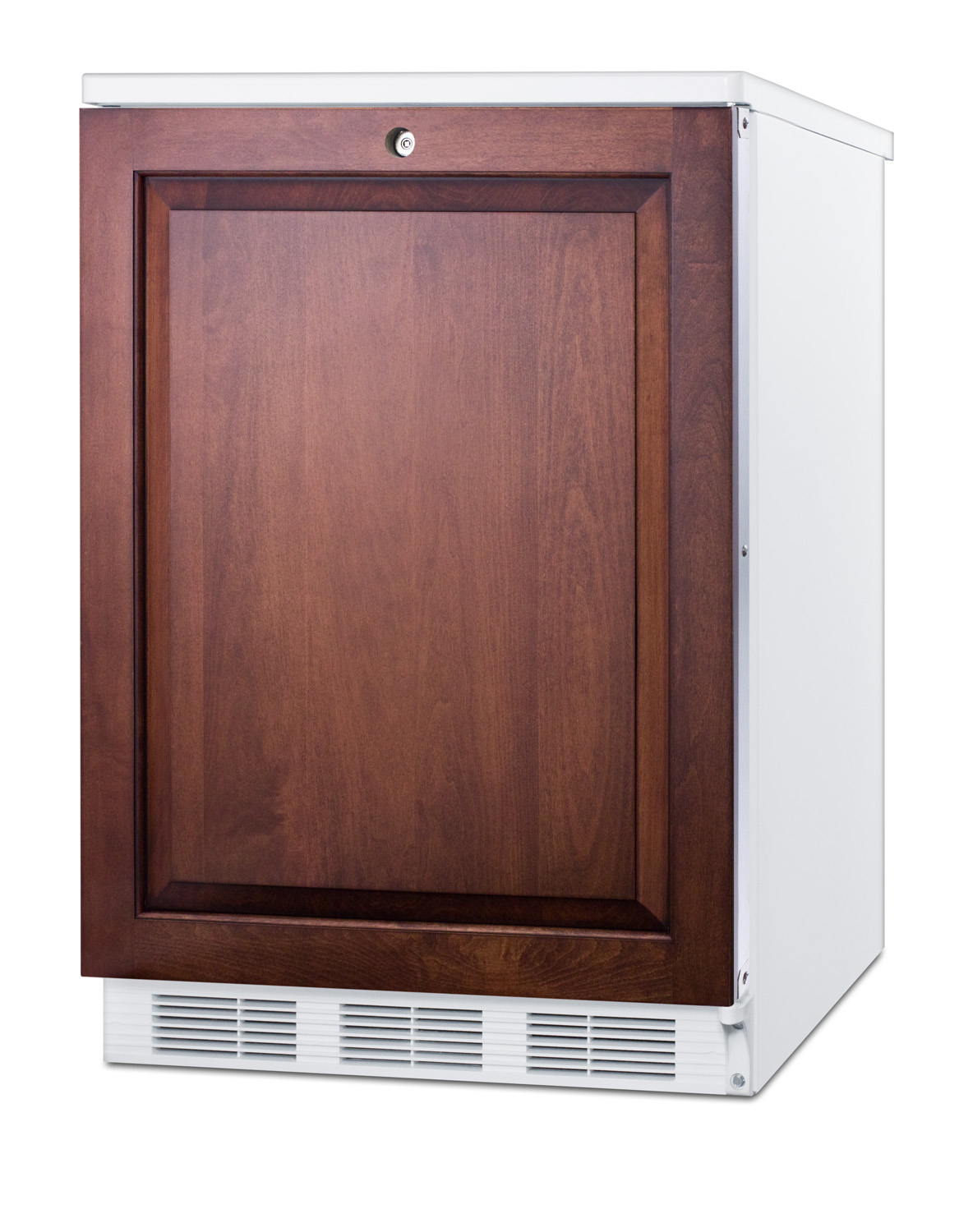 Accucold by Summit Appliance offers a wide range of undercounter refrigeration for general purpose storage. The CT66JBIADA Series includes refrigerator-freezers designed for optimum storage conditions in built-in applications under lower ADA compliant counters.At 32" high, the CT66LWBIIFADA can be used built-in or freestanding in ADA compliant settings. The 24" footprint fits many popular cutouts while offering over 5 cu.ft. of storage capacity. This model has a white cabinet. The factory reversible door includes a lock and an integrated stainless steel frame designed to accept full overlay panels for a custom look. Users provide their own handle.Inside, our unique dual evaporator system separately cools the refrigerator and freezer sections to ensure proper storage temperature. Cycle defrost operation reduces user maintenance in the automatic defrost fresh food section, with static manual defrost operation in the freezer compartment. Door storage provides easy access for tall bottles and small condiments. Additional features include adjustable shelves, a clear crisper, and automatic interior lighting.The CT66LWBIIFADA has long proven itself to have one of the best temperature performance records in the industry. To see additional finish options on this unit, browse the full CT66WBIADA Series.NOTE: This unit is designed for general purpose applications and does not meet DOE energy standards for residential use.