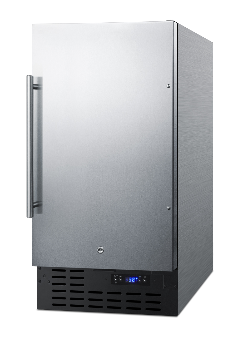 SUMMIT's selection of built-in undercounter refrigeration includes one of the industry's only complete 18" wide lines for the home.Sized just under 18" wide, the FF1843BCSS is the perfect all-refrigerator for space-challenged kitchens. It comes with stainless steel wrapped exterior and pro style handle. This unit can be used built-in or freestanding. The user-reversible door includes a factory installed front lock. Inside, the FF1843BCSS utilizes automatic defrost operation for low maintenance use. Four adjustable chrome shelves accommodate a variety of sizes and LED lighting offers an efficient interior view. This unit includes a digital thermostat for optimum temperature management.Combine the FF1843BCSS with its matching freezer, wine cellar, or beverage refrigerator. We also offer this model in black or with a panel-ready door. For a 32" high ADA compliant version, see the FF1843BCSSADA.