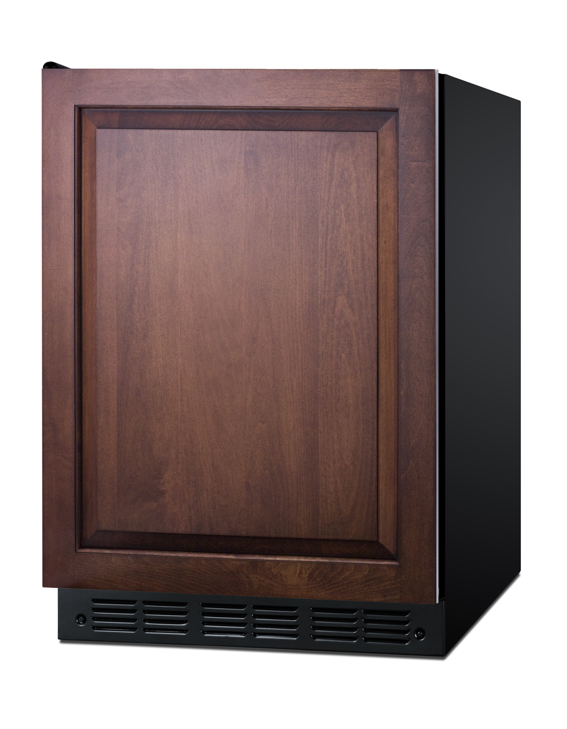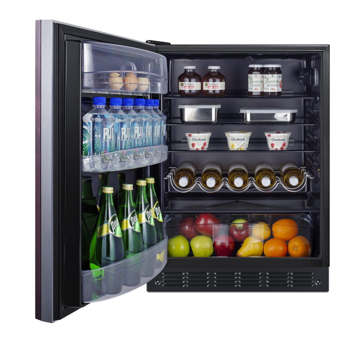 Summit's ADA compliant undercounter lineup of European-made, energy efficient refrigeration features 32" high choices that offer the largest capacity in the industry.Sized at 32" high with a 24" footprint, model FF6BK2SSIFADALHD is an ENERGY STAR certified all-refrigerator designed for residential use under lower ADA compliant counters. The door features an integrated stainless steel exterior frame designed to accept overlay panels, allowing you to create a custom look that can seamlessly blend into your kitchen (panel size: 23 5/16" W x 28 1/4" H and at least 3/4" thick). Users provide their own handle to complete the look. This unit has a jet black exterior cabinet and left hand door swing. It runs quietly at less than 33 dB.With a full 5.5 cu.ft. interior, the FF6BK2SSIFADALHD offers a higher storage capacity than other counter height units in the market. It features a black interior liner and black trimmed adjustable glass shelves for spill-proof storage. We also include a removable scalloped steel rack ideal for holding bottles in a horizontal position. A large clear crisper makes it easy to store produce at its best and three clear door racks let you keep condiments in easy reach. A light automatically illuminates the interior when the door is open. Summit's European lineup features classic mechanical controls. The dial thermostat ensures an intuitive, trouble-free performance without any internal boards or chips. Automatic defrost reduces user maintenance and our signature cold wall design creates an efficient, reliable cooling system. The FF6BK2SSIFADALHD is UL listed for residential use. With its large capacity, professional finish, and user-friendly features, this freezerless refrigerator is a convenient option for homes, offices, schools, and other settings in need of reliable cold storage. Additional choices are available in other finishes, as well as with freezer compartments (model CT66BK2SSIFADA). Browse the full Summit catalog to discover the perfect