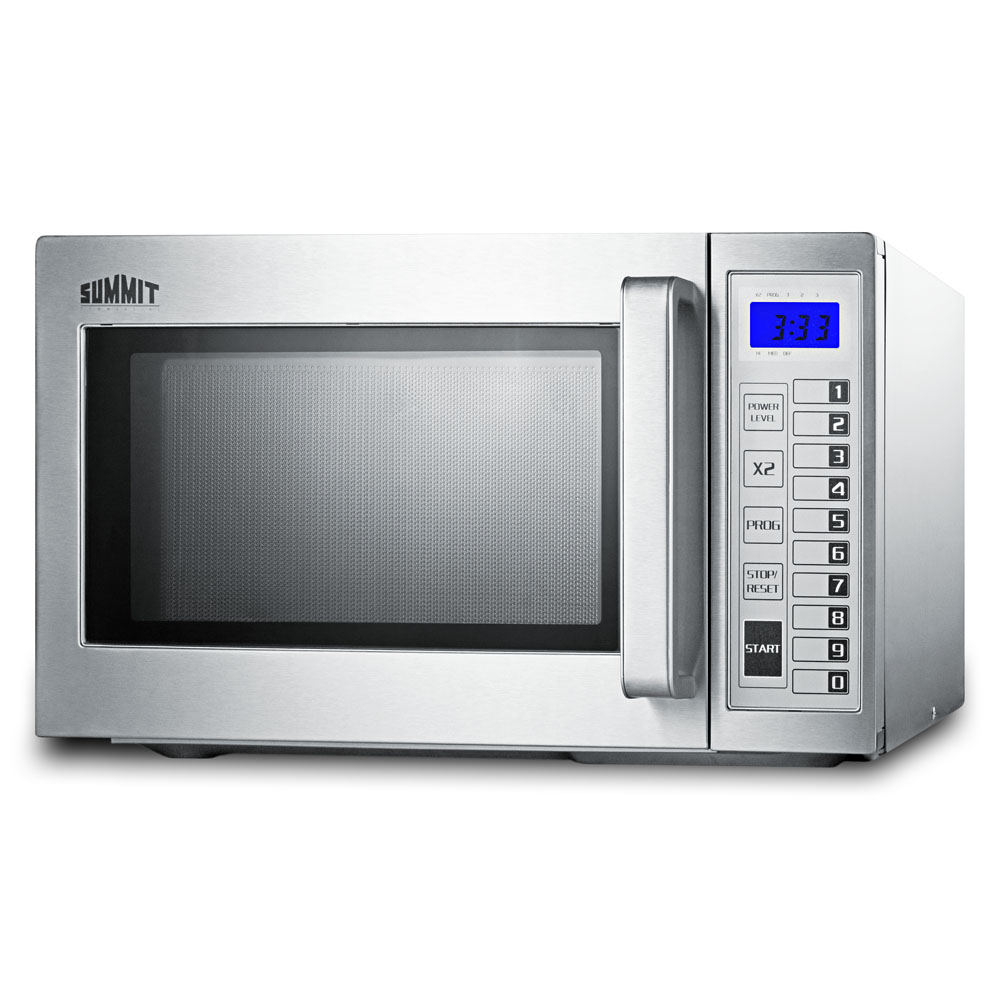 Summit SCM1000SS is a countertop microwave in complete stainless steel.This 1000 watt countertop unit features a robust design for lasting durability. The stainless steel interior has a flat bottom with no turntable, ideal for high usage institutional settings. The SCM1000SS features a complete stainless steel exterior, with an easy-to-grab handle. Digital controls offer multiple power levels for proper cooking. Cooking programs can also be saved for fast one-touch use. This model also includes a programmable child lock and counter function to keep track of how many times the oven has been used. With its durable construction and multiple cooking features, the SCM1000SS is the ideal choice for various applications in need of a mid-sized microwave built to last.