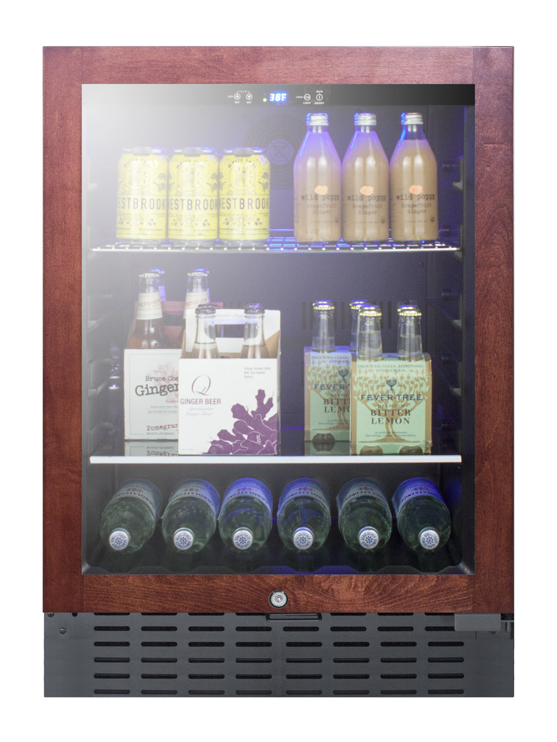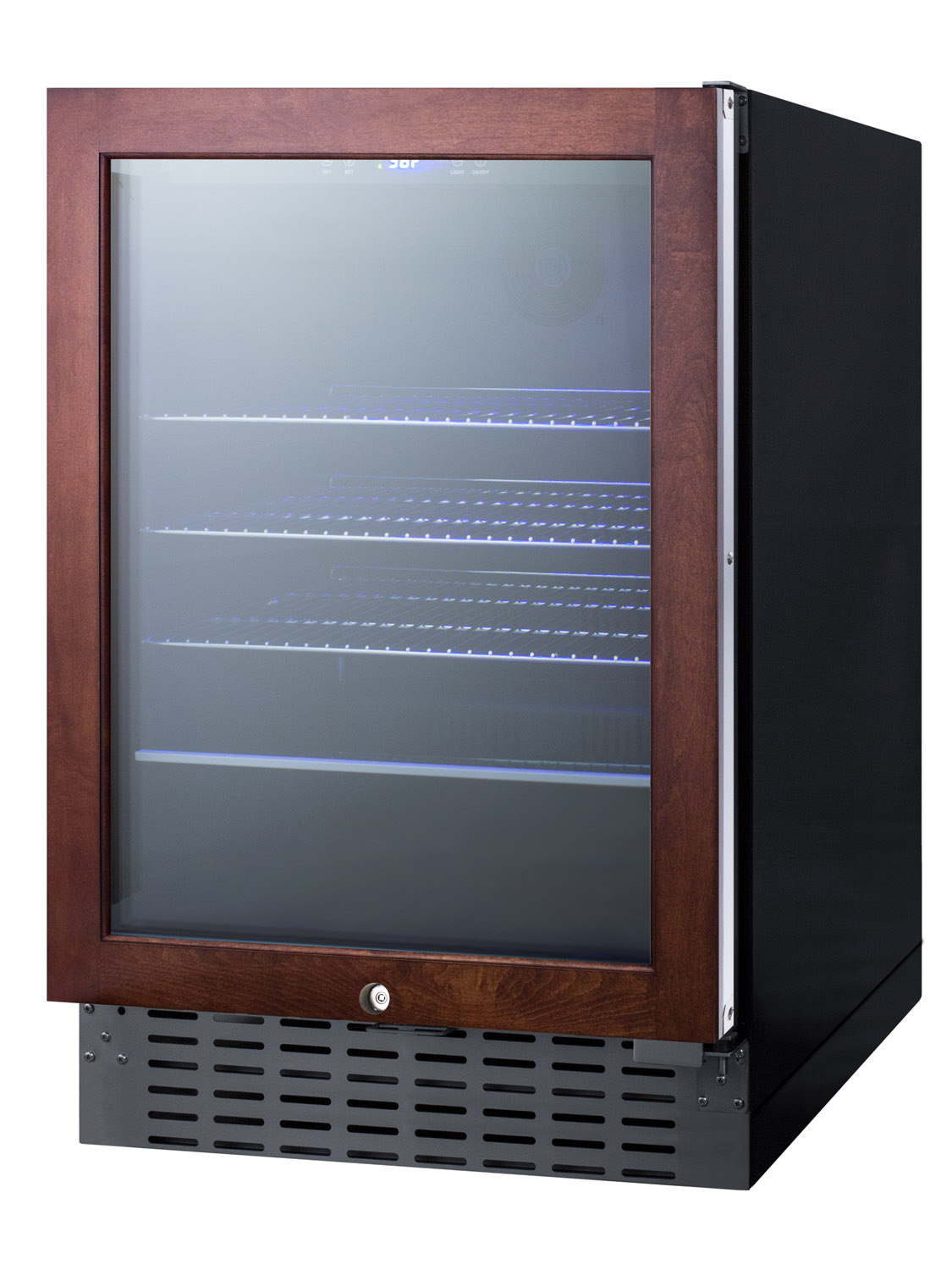 With a dual-purpose design, the SCR2466BPNR can serve as a beverage cooler or refrigerator offering unmatched versatility for residential or commercial use. The SCR2466BPNR is ETL-S listed to NSF-7 commercial standards and also meets residential standards. The front-breathing design allows built-in installation, while the fully finished black cabinet also enables freestanding use. The double pane tempered glass door features a seamless stainless steel trim designed to accept overlay panels, allowing you to match the refrigerator to your own cabinetry. Users provide their own handle to complete the custom look. A temperature alarm provides added security should the temperature go beyond the setpoint. The optional Sabbath Mode can be used to disable certain electrical features during periods of religious observance. The automatic defrost system keeps the unit running efficiently with little user maintenance. Inside, the SCR2466BPNR has a digital control panel which allows you to manage the unit’s temperature with ease. An adjustable temperature range between 34 and 65ºF allows for a variety of beverage storage options. Three pull-out chrome shelves provide maximum storage capacity, while the fourth glass shelf allows for contents to be stood upright for added storage flexibility. The shelving brake system keeps the unit contents safe during loading and unloading, and the slotted floor ensures easy and safe storage of wine bottles. The soft LED lighting in a gentle blue hue offers an attractive and efficient presentation.With its advanced user features and versatile design, the SCR2466BPNR is an excellent addition to any setting looking for a beverage cooler with a modern, elegant look.