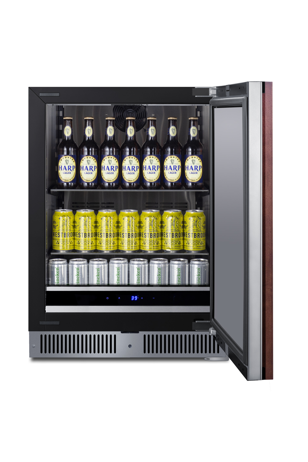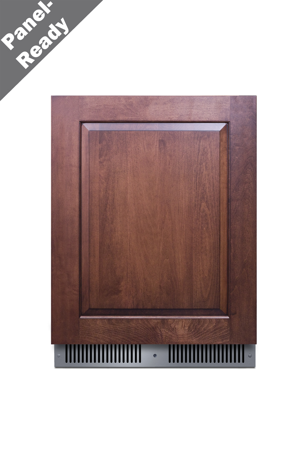 Summit's shallow-depth series of built-in undercounter refrigeration brings full functionality to kitchen islands, wet bars, and other settings with space limitations.The SDHR2444PNR is a 24 wide all-refrigerator sized under 18 deep. It comes in a 34 height to fit standard undercounter spaces. The front-breathing system allows built-in installation, while the fully finished black cabinet also allows freestanding use. This unit has a sealed rear and right angle cord for a better fit. A lock is located in the kickplate for added security. The stainless steel wrapped door features our fully articulating European hinge. We include a 2-piece bracket kit that allows easy installation of overlay panels to create a custom look that can blend into your existing cabinetry design. The user-reversible door swing allows easy adjustment as needed. Inside, the unit features stainless steel construction for improved durability and sanitation. Fan-forced cooling ensures even temperature distribution and fast temperature recovery. Recessed LED lighting offers an attractive yet efficient look. The digital thermostat makes it easy to manage the interior temperature. This unit includes a cantilevered shelving system with glass shelves for flexible storage. Additional features include an open door alarm, high-temperature alarm, and Sabbath mode setting that lets you disable some of the electrical elements during observance periods for up to 96 hours.The SDHR2444PNR is ETL-S listed to NSF-7 commercial standards but can also be used in the home. With its deluxe style, user-friendly features, and uniquely shallow depth, this unit offers premium value for a variety of settings. Alternative 18 deep choices are available in 15, 19, and 24 widths, including outdoor refrigerators, refrigerator drawers, and more.