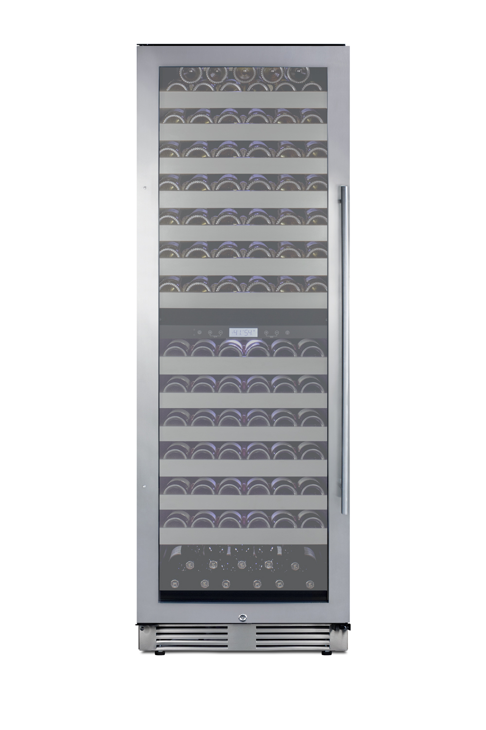 - Versatile storage - Interior can hold up to 163 standard 750ml Bordeaux style bottles (20 bottles stacked on the upper shelf, 11 bottles per middle 12 shelves, and 11 on the slotted floor). If storing wider Burgundy style bottles (typically used for Pinot Noir or Chardonnay), you can accommodate up to 110 bottles (8 per shelf with 6 stacked on the slotted floor)