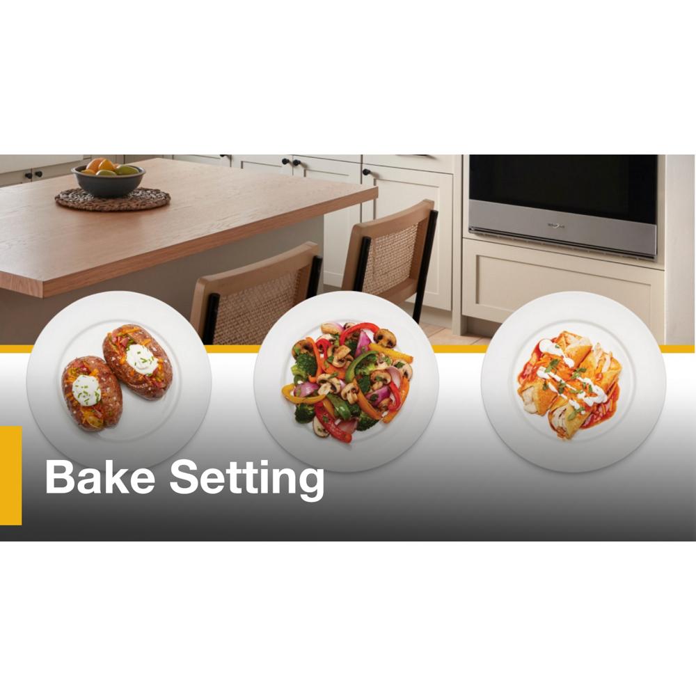 - Cook your favorite treats like cookies, pies, cakes or muffins with the Bake setting that uses hot air to cook food inside the oven.